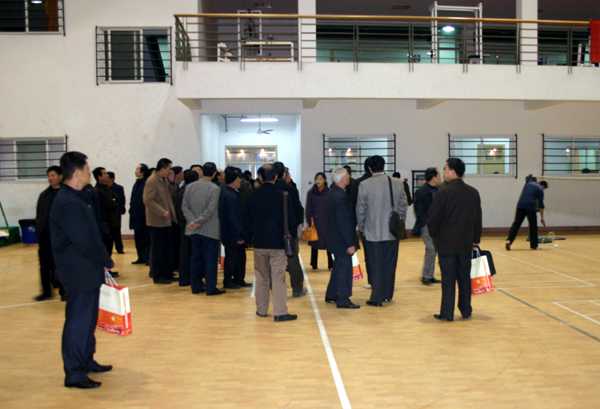 会议结束后全体与会代表一起合影留念。王志强总务长带领与会代表参观了我校食堂、会堂、体育馆、一教楼等学校建筑设施,并一一为代表们讲解介绍,王芝庆副校长全程陪同。