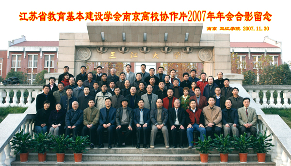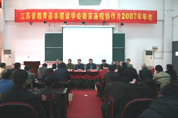 江苏省教育基本建设学会南京高校协作片2007年年会于11月30日下午3:00在我校图书馆二楼演讲厅召开。出席会议的有省基建学会副会长、江苏省教育厅发展规划处周鹏维处长,省基建学会副会长、南京大学薛海林副校长,省基建学会副会长、东南大学赵启满副校长,省基建学会副会长、南京师范大学王小鹏副校长,江苏教育学院李久生副院长,南京海事学院蔡步前副院长,三江学院王芝庆副院长等30余所在宁高校的相关领导和专家及省基建学会领导和专家共计70余人。会议由省教育基建学会副会长、东南大学副校长赵启满同志主持。