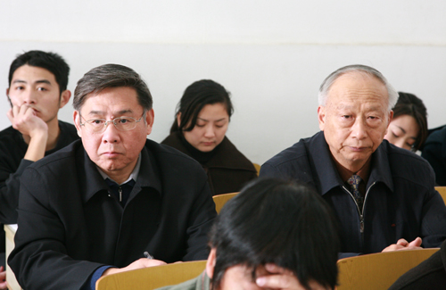 陈万年校长和赵连泽处长认真观摩教学