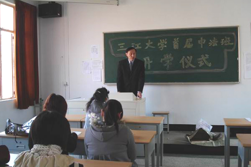 此次“专升硕”法国留学项目是我校与法国名牌公立大学——巴黎第十三大学的首次合作,2008年度共有学生十余名。在开学仪式上,黄院长首先致辞,分析了当今留法形势,并预祝该项目成功。周主任随后介绍巴黎十三大学的项目及国外留学动态,然后由南京师范大学法语系两位老师介绍学习法语的技巧和经验,并有即将留学法国的学生分享法语学习体会,最后孟老师提出对办理留法签证的要求。整个开学仪式简单却不失庄重。