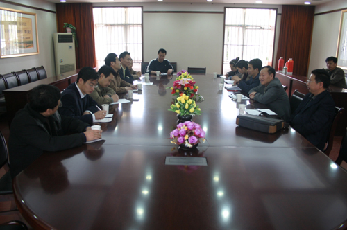 我校后勤集团常务副总经理朱争鸣、副总经理王斌等八位同志在行政楼101会议室热情接待了来访的客人。