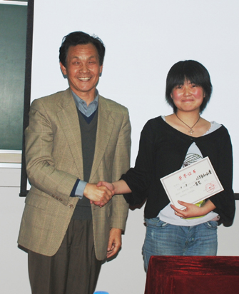 韩力江主任与一等奖得主邹抒兰同学合影留念