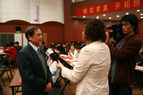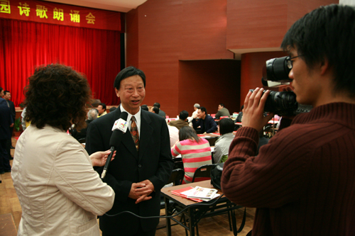 陈万年校长首先致欢迎辞,他说,这么隆重的诗歌朗诵会在我们三江学院举行,他很高兴,他谨代表三江学院16000名师生员工对各位领导、各位著名人士的到来表示热烈的欢迎和衷心的感谢,同时他对诗歌大赛的获奖作者表示祝贺。陈万年校长给来宾们简单地介绍了我校的校史、概况及本科教学工作水平评估的情况。陈万年校长说,他相信这么多知名的诗人、作家走进我们三江学院,来举办这么一场有意义的校园文化活动,必将对三江学院的校园文化建设、对我们三江学院学生情操的陶冶起到巨大的推动作用。他再次感谢江苏省作家协会、扬子江诗刊,感谢各位知名作家和诗人来到三江学院,给我们的师生一个很好的学习机会。最后他祝愿此次诗歌朗诵会圆满成功。省作家协会主席王臻中随后发表了讲话,他代表江苏省作家协会预祝民生诗之歌诗歌大赛暨“三江杯”诗歌奖活动圆满成功,并对这次活动中涌现出的大批优秀诗作及获奖的佼佼者表示祝贺。他还对此次诗歌大赛和“三江杯”诗歌奖活动的参与者和所有给于这次活动以关爱、支持与帮助的各界领导和朋友,特别是三江学院的领导、老师和同学表示衷心的感谢。王臻中主席说,一切诗歌和文学作品都源于生活,经审美创造,包涵人文情怀,孕育无穷的审美潜能,是满足人们精神需要的精美食粮。他认为,当今的中国正走在一个历史的新起点上,“解放思想、关注民生”成为时代的主潮,改革开放的30年,使人变成了“经济人”,而今后的30年,将要在“科学发展观”的指引下建立和谐社会,从而塑造“和谐人”,要进一步解放思想,树立起“以人为本”的权威,在社会体制改革中,突出的重点就是关注民生,在这样的历史背景下举办“民生之歌”诗歌大赛及“三江杯”校园诗歌大赛,对于促进关注民生的诗歌创作具有深远意义的。最后,王臻中主席预祝诗歌朗诵会取得圆满成功。