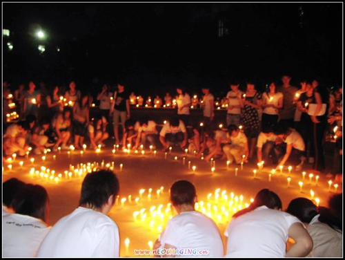 5月21号,全国哀悼日的最后一天,由三江学院商学院主办,电子商务协会承办的“5.12大地震烛光哀悼会”在学校1号校门如期举行,约400名同学们参加了此次活动。