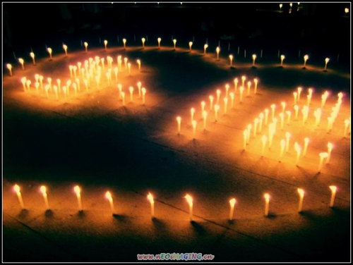 晚7点半,烛光哀悼会准时开始。1号校门下,同学们手捧蜡烛,围成心型,中间呈“5.12”字样,图书馆前的花坛上也布满了闪着火光的蜡烛,小小的蜡烛寄托了三江同学对遇难同饱的悼念,小小的烛火刺破了黑幕,将黑夜照亮!“汶川顶住!中国加油!”同学们挥臂而呼,响彻三江校园,《感恩的心》的音乐声也随之响起,呐喊声、音乐声完美的结合在一起,感动了在场的每一个人。随后,同学们对着烛火为遇难同胞深深的鞠躬,并集体默哀三分钟为他们祈福!