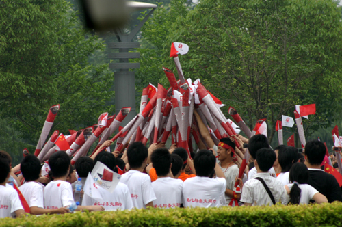 今天,“爱心与圣火同行”成为南京火炬传递的一大主题词,表达了南京市民对百年奥运的期待和对灾区人民的深情,文明观看展示了“博爱之都”的精神风采。