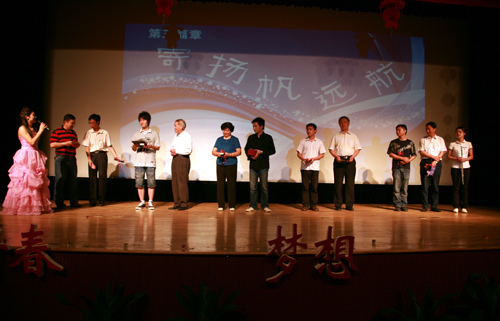 6月18日晚19:00,由共青团三江学院委员会主办的三江学院欢送2008届毕业生晚会在我校会堂隆重上演。三江学院校长、党委书记陈万年教授,三江学院副校长骆志斌教授,三江学院副校长、党委副书记叶俊教授,三江学院副校长王芝庆教授,三江学院副校长王志强老师,部分职能部门和院、系的领导共同出席了晚会,并与近千名同学一起观看了整场演出。