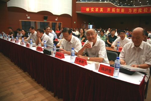 陈万年校长首先高屋建瓴地为我们分析了国际高等教育改革与发展的动态,他介绍说,世界各国政府非常重视促进高等教育的发展。各国大学人才培养呈现五个趋势,都在积极探索构建“以学生学习为中心”的人才培养模式,强化高校的教育教学质量保障机制。陈校长又为我们分析了江苏高等教育发展面临的形势,然后重点部署了学校当前的发展主题和新学年的主要工作。他说:“在当前形势下,学校今后一段时期的发展主题是:总结前15年的办学经验,审时度势,抓住机遇,科学发展,不断加强学校内涵建设,提高人才培养质量和办学水平,促进学校又好又快发展。”