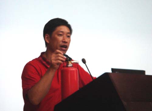 按照校领导加强学校安全、确保稳定和谐校园的要求,学工部、保卫处对08级全体新生进行了安全常识的培训,消防科科长陈大胜对校内灭火器的种类及使用方法做了讲解,要求同学们养成爱护消防设施、杜绝使用违章电器、校园内不吸烟的良好生活习惯,做个讲文明的大学生,校110民警孙燕刚也到会做了防盗、防骗的报告。