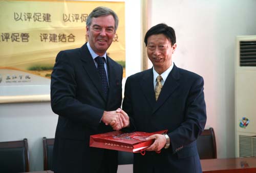 陈万年校长赠送客人礼物 摄影/张正君