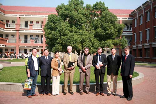 国际教育学院院长黄克明等带领客人参观校园
