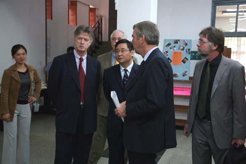 赛克新大学校长等人分别在中午和下午与国际教育学院07、08级荷兰班、06级荷兰班的学生进行了面对面的对话。国际处处长Chris van den Borne先给学生做了一个有关赛克新大学的演讲,随后热情解答了同学们有关荷兰大学留学条件及申请流程等的问题,其中包括生活、学习等相关问题。在明年的此时,三江学院将有第一批符合条件的学生能够到荷兰赛克新大学继续学习。此外,Wim Boomkamp校长等人还深入课堂,旁听了一节国际教育学院08级新生的英语听力课,对中国的教育方式有了深刻、直观的印象。