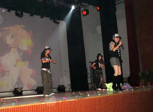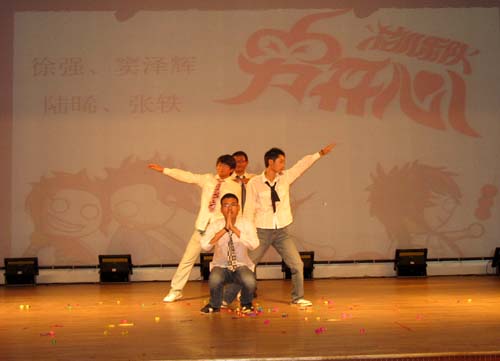 一段由四个可爱的男生带来的另类搞笑舞蹈将晚会推向了第一个高潮,深情的《你那么爱她》、《罗密欧与朱丽叶》,性感的印度舞蹈,时尚的《骑士精神》、《海阔天空》,感人的小品《懂得感恩》等精彩节目赢得了在场观众一阵高过一阵的欢呼声和掌声,大艺团的街舞及颇具日本风情的动漫秀COSPLAY SHOW的精彩演出更是将晚会推向了一个又一个高潮。