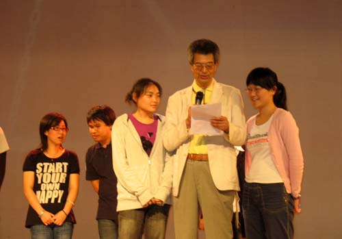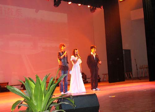 本次晚会主题有两个,一是欢迎08级的新同学,另一个则是欢迎来自远方的客人——日本大东文化大学的见习生。由于学生会同学的策划和宣传,晚会定于六点三十分开始,可不到六点十分,整个三江会堂便已人头攒动。日语系学生会全体成员合唱的日文版《后来》拉开了本场晚会的序幕,系主任揭侠教授幽默风趣的中日双语欢迎词充分展示了日语系大家庭的无限热情和日本语言的无穷魅力。七位日语系外教老师自我介绍的同时带来了对08级新同学的殷切希望和谆谆教悔,三位日本见习生也表达了他们对未来在三江生活的期待和对三江学院新老生的祝福。