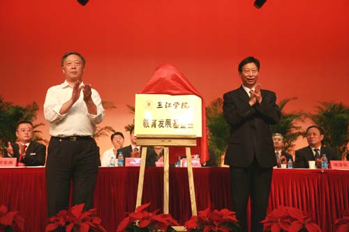 陈万年校长和三江学院教育发展基金会理事长骆志斌为基金会揭牌