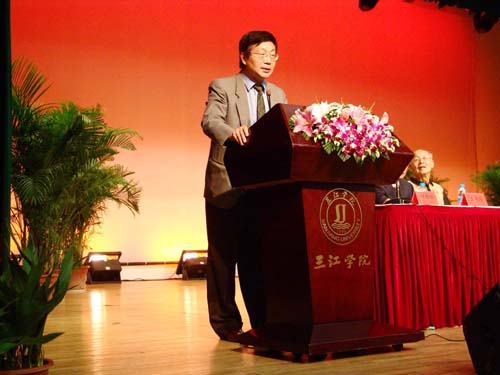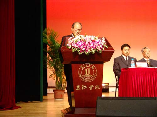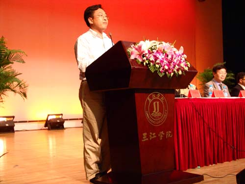 “热烈庆祝计算机科学与工程学院成立十五周年”的横幅,顾往昔今日的宣传片,充满热情的校友……三江会堂里到处洋溢着活力、喜庆、和谐与朝气蓬勃的景象。领导、老师、学生,都带着一张张热情洋溢的笑脸,纷纷有序地进入会场。三江学院理事、副校长、计算机科学与工程学院院长王芝庆教授,王志强副校长,计算机学院王成均、佟振明、叶传标副院长,印度NIIT驻中国总裁Kamal先生,东南大学软件学院邓建明院长,三江学院的老校长丁承憼教授等出席了此次大会,会议由叶传标副院长主持。