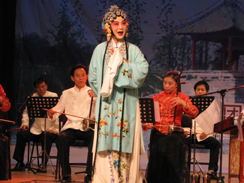 赏析演出在叶俊副校长的精彩致词后拉开了序幕。国家一级演员、影视剧三栖明星侯长荣和国家二级演员诸葛秀兰担任主持。首先是民乐合奏《扬州好》和扬剧曲牌曲目协奏,其中有高胡、二胡、中胡、笛子、笙、扬琴、古筝、琵琶、大提琴和木鱼十种乐器合奏,为本场赏析演出奏响了第一曲。出演此次赏析演出的可谓群英荟萃,其中有国家一级演员袁晓君、国家二级演员汪晓燕、马晓祥、李霞等,他们分别献演了扬剧经典唱段《断太后》、《珍珠塔·方卿羞姑》、《百岁挂帅·登高丘》等;随后演员与学生的精彩互动充分调动了现场的气氛,也进一步加深了广大同学对传统艺术的兴趣。国家一级演员、梅花奖获得者徐秀芳携众演员演出的大型经典扬剧《百岁挂帅》选场将赏析演出推向了高潮。演出结束之时,全场观众报以热烈的掌声。最后,校领导上台与众演员合影留念。
