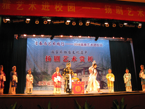 由团委主办的高雅艺术进校园系列活动之国家非物质文化遗产——扬剧艺术赏析于10月21日晚7:00在三江会堂隆重举行。三江学院常务副校长骆志斌教授、三江学院党委副书记、副校长叶俊教授、三江学院学生工作部副部长、团委屈伯俊书记以及江苏省扬剧团的各位领导和老师。同时,大约有800名学生到现场观看了演出。