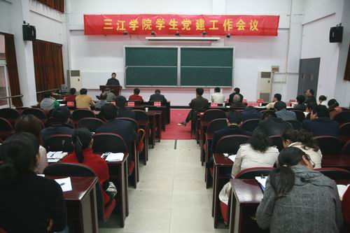 会上下发了校党字【2008】15号文件《关于推进学生党建工作的意见》。学生工作部副部长、组织部副部长卢启发作了《关于15号文件的说明和贯彻》的报告。组织部部长季春富根据会议精神,重点强调了党的发展方针和材料准备、发展程序等的规范性。