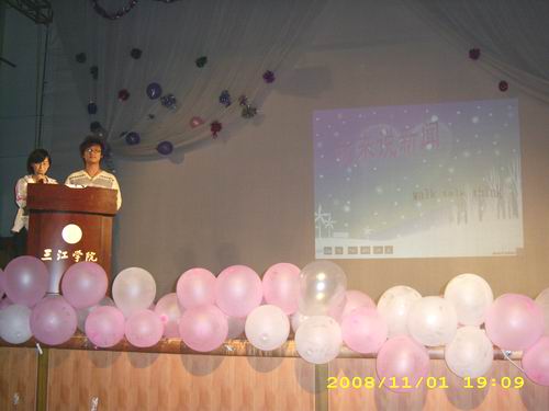 11月1日晚,主题为“WALK TALK THINK”的三江学院首届“相约记者节”在体育馆多功能厅盛大开幕。这次活动由三江学院团委、社团联合会主办,社联大学生通讯社、《三江青年》杂志社、《样子》报刊社联合承办。