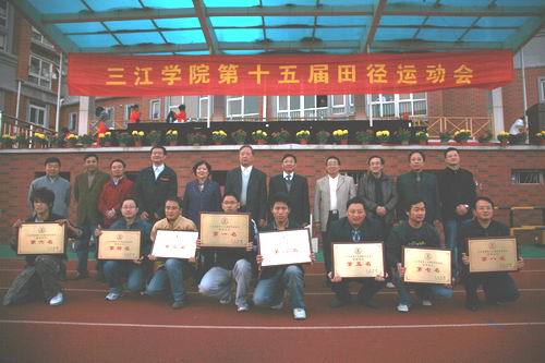 约9点钟,开幕式文艺表演开始,五彩缤纷的文艺节目让田径场增添了更多亮点。五彩的巨龙腾跃在田径场上,多姿的卡通让观众开心地笑起来,教工的健美操活泼健美,文学院的舞蹈创意独特、热情奔放。本次运动会全校19个院(系)及教工代表队参加,673名运动员进行了31个项目的比赛,经过2天的激烈角逐,9日下午4点30分,运动会正式闭幕,在田径场主席台前举行了闭幕式,骆志斌常务副校长致闭幕词。总裁判长宣布获奖结果,随后骆志斌常务副校长、叶俊副校长和董新华副校长为各个奖项的获奖单位、个人颁奖,本次运动会的道德风尚奖由英语系、电子信息工程学院、文化产业管理学院、法律系、艺术学院、国教院获得,团体操优秀表演奖由职成院、文学院、商学院、土木工程学院、机械系、教工队获得。最佳组织奖由文学院、机械系、商学院、电气与自动化学院、计算机学院、职成院获得。团体总分前八强分别是职成院、商学院、电气学院、文学院、土木工程学院、国教院、计算机学院、机械系,职成院以261分的总分夺得冠军,商学院以190分的成绩夺得亚军。 男子组铅球第一名——商学院高尚以10.85米的成绩,女子组跳远第一名——职成院孙梦喆以4.58米的成绩打破了学校记录。颁奖结束后,校领导分别和职成院、商学院等代表队合影留念,欢呼声沸腾在田径场上。