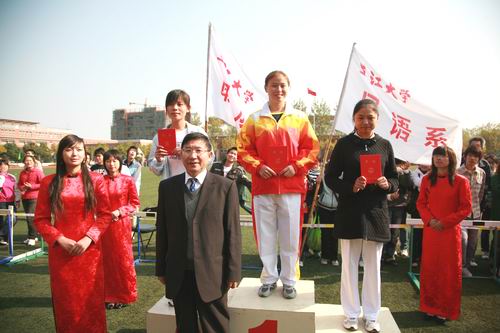 (骆志斌常务副校长为获奖运动员颁奖 摄影 宋常铁)