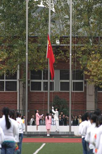 (举行升国旗仪式)摄影 、张正君