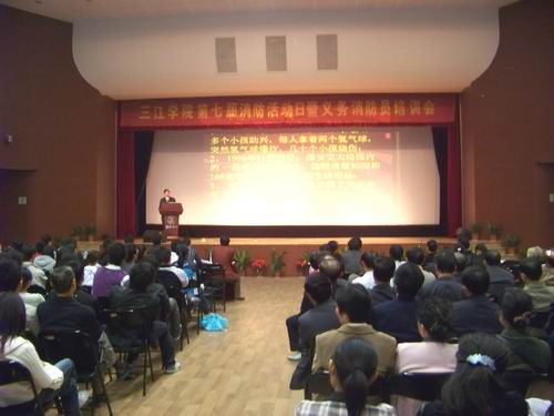 11月6日,保卫处举办了我校第七个消防安全活动日活动,并组建了由学生骨干、楼层长、宿(楼)管员、各院(系)部门安全员组成的义务消防员队伍。市消防支队法规处处长肖礼清教授来到我校给队员讲解新《消防法》,列举了高校火灾案以及发生的原因和处理措施。保卫处处长朱争鸣号召队员们爱护消防器材和设施,学习《消防法》,掌握防火技能,为学校的安全文明校园创建活动提供保障。会后队员们参观了校园违章电器展览。