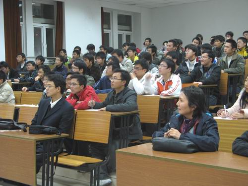整场报告同学们都认真听讲、记录。孙教授用他丰富的知识、渊博的学识深深吸引了同学们,报告结束时,同学们报以热烈的掌声。
