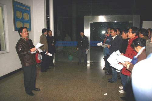 参加此次专项检查的有我校副校长董新华、学生工作部部长朱银亮、保卫处处长朱争鸣、学生工作部副部长仇存进、周学军、屈伯俊、卢启发、学生工作部有关老师、后勤集团宿舍管理部有关负责人、各院系学工办主任、有关辅导员及学生自律组织成员等近140余人。大家不顾夜晚的寒冷天气,9点准时在体育馆南门大厅集中。学生工作部负责学生宿舍安全工作的周学军副部长明确了分工,并向检查人员重声了“四查四禁”检查内容:1、检查学生使用违章电器情况,禁止学生使用违章电器;2、检查学生有无私拉乱接、禁止私拉乱接电线、插座和网线;3、检查、禁止学生宿舍区不允许带管制刀具、易燃易爆等物品;4、检查学生抽烟,禁止学生在宿舍区抽烟;5、内务卫生检查。