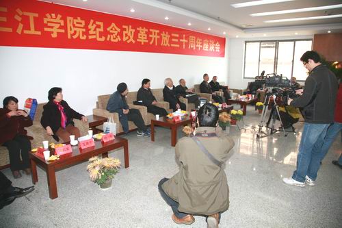 11月25日下午2点,我校在三江会堂会议室热烈召开了“庆祝改革开放三十周年”座谈会。座谈会特意邀请了《实践是检验真理的唯一标准》编辑、原新闻出版署副署长王强华和《实践是检验真理的唯一标准》原稿作者、原江苏省政协副主席胡福明。参加座谈会的有我校陈万年校长、骆志斌常务副校长、叶俊副校长、王芝庆副校长、王志强副校长、理事会理事丁承憼,职成院院长郭彬,校(党)办主任周更生,党委宣传部部长王勇,党委组织部副部长卢启发,学工部副部长屈伯俊等。
