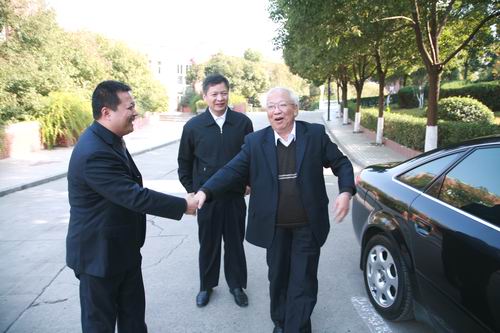 (骆志斌常务副校长与两位老人互致问候)