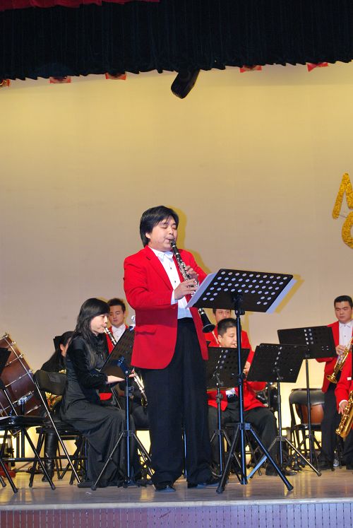 乐团首先带来了曲调激昂的《动感地带》,浑厚的管乐器合声给听惯了流行歌曲的学生们极大的震撼。时而气势磅礴,时而轻快悠扬,时而柔和抒情的乐曲带观众走进不同情感的音乐世界。管乐团各种乐器的示范演奏环节将整场活动推向了高潮。观众们先是静静聆听每一种乐器独有的音质,安静之后便是一阵阵赞叹的掌声。乐团首席黑管演奏家、首席小号演奏家又为观众带来了精彩的独奏。《掀起了你的盖头来》、《西班牙斗牛士》等耳熟能详的曲子让场内几度升温。