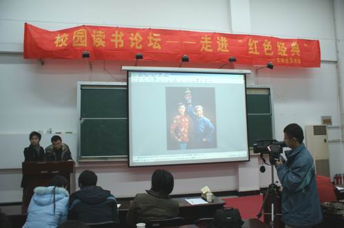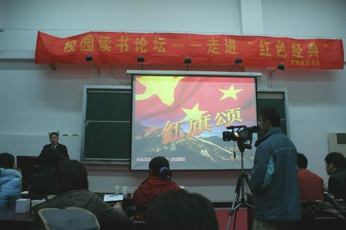 弘扬红色经典,营造浓郁文化氛围,共建三江精神家园。本着传承红色经典文化,探讨当代大学生心中红色经典的理念,12月17日晚六点三十分,由党委宣传部、图书馆联合主办,三江学院大学生读书会承办的首届大学生读书节系列活动之走近“红色经典” 校园读书论坛在图书馆二楼演讲厅拉开帷幕。本次论坛作为首届读书节的重要组成部分,在同学中产生了强烈的反响。