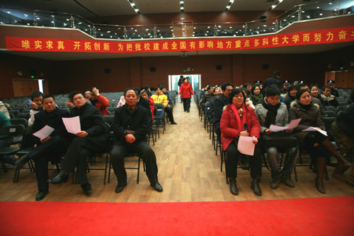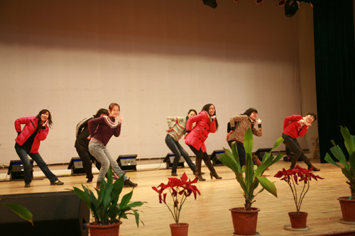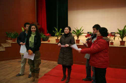 1月15日下午,记者来到我校2009年迎新春联欢会彩排现场,提前感受了新年联欢的气氛。晚会的主要策划者,副校长、副党委书记、校工会主席叶俊,党委宣传部部长、校工会委员王勇,学生工作部副部长屈伯俊等在现场观看并指导彩排。