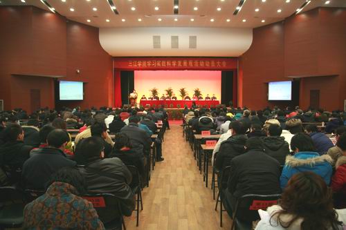 3月4日下午,我校在三江会堂召开了学习实践科学发展观活动动员大会,校领导、中层以上干部、全校教职工党员、全体辅导员、学生党员等800余人出席了动员会。动员大会由副校长叶俊主持。