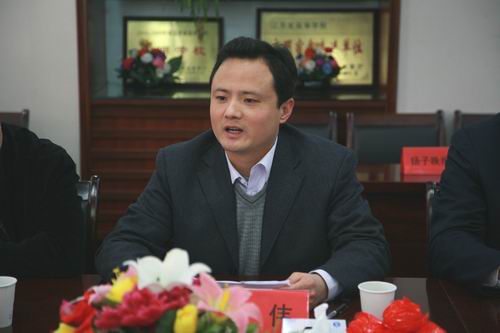 南京市团市委副书记、青年商会副会长王伟介绍杰出青年企业家代表并讲话,他代表青商会和南京青年企业家衷心地感谢我校给他们提供了一个非常好的交流机会与平台。他向校方及在座的媒体记者介绍了南京青商会的性质、成立时间、发展历史、会员情况、成立以来在促进企业发展方面所做的贡献、对外交流与合作情况等,并重点介绍了青商会的“对话区县长”活动,青商会定期与南京各区县长进行沟通与交流,以此给南京各区县企业的发展以有益的建议。王副会长说,与三江学院的沟通与交流可以说是青商会“对话区县长”模式在高校领域的拓展,所以他感谢我校给他们提供了这样一个沟通与交流平台。他希望本次活动能成为一个引子,作为青商会与三江学院合作的初始,今后青商会将与三江学院就大学生创业、就业教育进行交流,就人才培养进行合作。