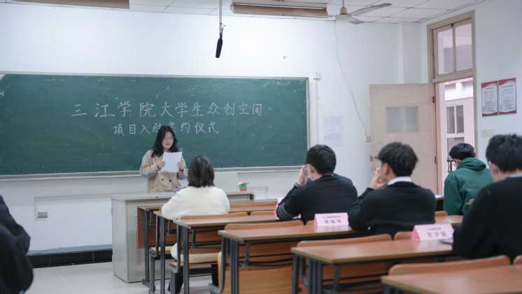 创新创业学院创业服务部刘玉梅老师代表学院对出席本次签约仪式的领导及项目成员表达了热烈的欢迎。她简要介绍了本次入驻项目的整体情况,表达了对当代大学生创客的期许,勉励同学们抓住创新创业的浪潮、以梦为马不负韶华,实现个人目标的同时积极推动三江学院校园创业氛围。