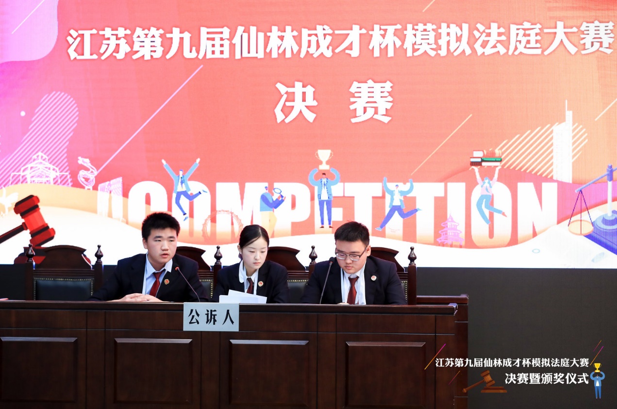 本次决赛在栖霞区人民法院举行。经过初赛的比拼,参加此次决赛的高校强手林立,它们分别是南京大学、东南大学、南京师范大学、南京理工大学紫金学院、三江学院、南京工业大学、无锡太湖学院、扬州大学、南京航空航天大学、安徽财经大学、南京农业大学、河海大学。经过激烈角逐,最终我校法商学院法律系的智颖,陈宇和唐海文三位学生在龚大春老师的指导下,取得了与南京航空航天大学并列总决赛三等奖的佳绩。
