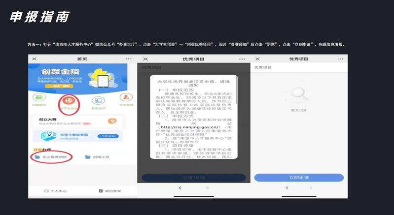 在分享会上,邹羽向同学们介绍了南京市优秀大学生创业项目和E类人才申请的申报流程。她细致入微地讲解项目策划的精髓、市场调研的要点、团队组建的策略,以及申报材料准备的关键细节,每一步都渗透着她对创业过程的深刻理解。