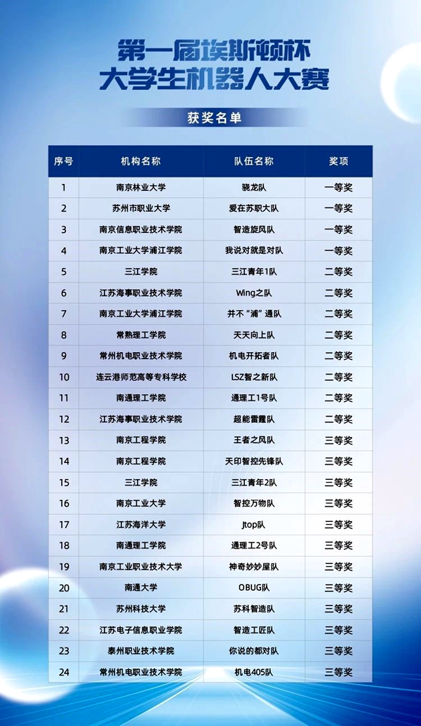 本次大赛吸引了来自全国26所院校的41支参赛队伍。经过一系列激烈的比拼,最终南京林业大学、苏州市职业大学、南京信息职业技术学院、南京工业大学浦江学院、三江学院、南京工程学院等24支参赛队伍脱颖而出,分别荣获了大赛的一、二、三等奖。他们以积极地参与态度和顽强的拼搏精神,充分展现了青年学子的卓越风采与强大实力。