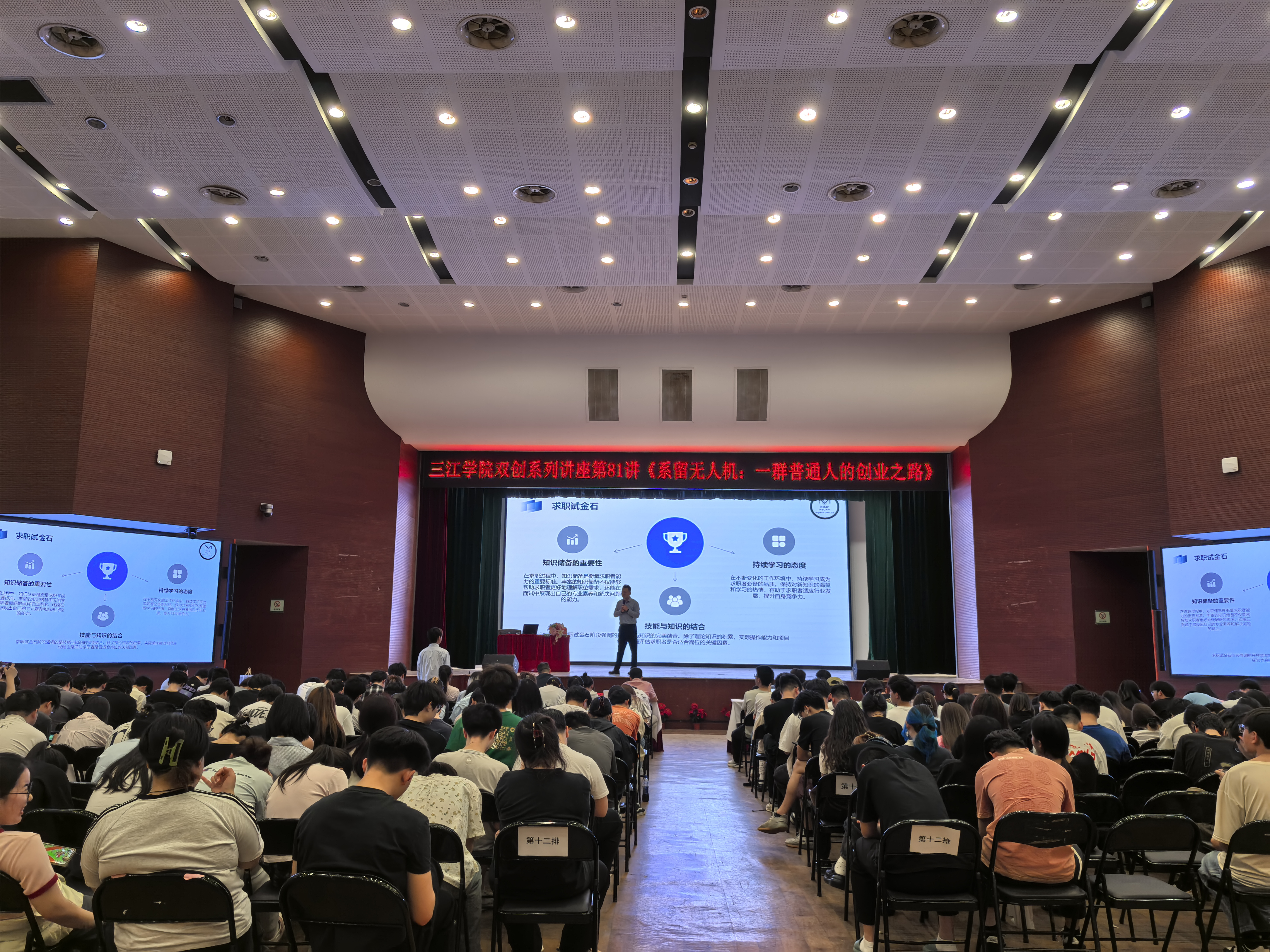 4月29日晚,三江学院双创系列讲座第81讲在三江会堂顺利举行。本次讲座特邀迈优威科技创始人万千、联合创始人王昕担任主讲嘉宾,以《系留无人机:一群普通人的创业之路》为主题,为同学们带来了一场兼具启发性与实用性的创业经验分享。