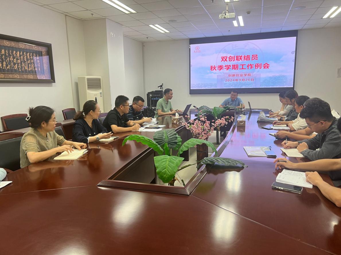 在会上,齐鹏副院长就2024年下半年度的双创工作主要内容进行了总体说明,重点围绕《三江学院大学生创新创业活动置换课程(修订)》、双创竞赛、双创系列讲座、创新大赛师资培训、众创空间项目培育等内容进行了报告;科技创新部吴正平老师、办公室蒋壮老师、创业服务部刘玉梅老师和教学培训部张珍老师就分别负责的工作,和参会的领导、老师做了相关沟通。