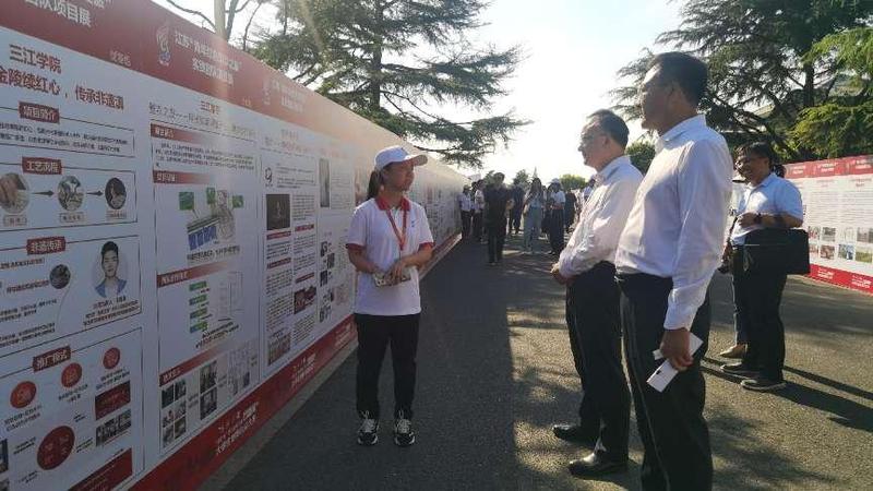 此外,在8月31日举办的第九届江苏省“互联网+”大学生创新创业大赛“青年红色筑梦之旅”活动启动仪式上,创新创业学院组织了“《奔跑吧小兵》—中国首部以弱视儿童为主角的动画连续剧”、“掐丝金缕—金陵续红心,传承非遗滇”、“蟹农之友—科技赋能河蟹产业,助力乡村振兴”等三个学生创业项目团队参加了展示。江苏省教育厅副厅长杨树兵等出席活动的领导参观项目展板,并听取团队负责人的汇报,充分肯定了我校创业项目的活动成效及社会意义。