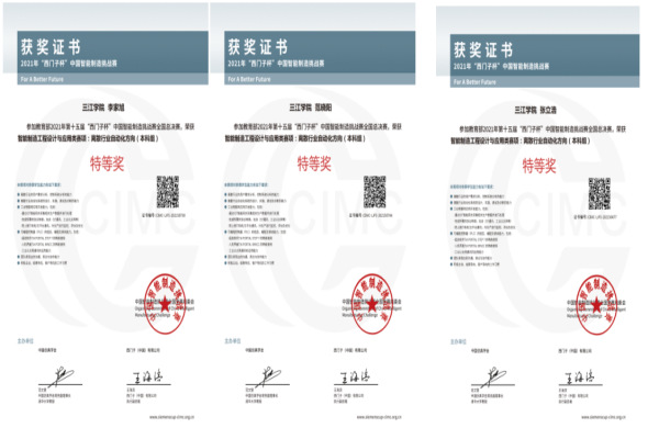 喜报:三江学子在教育部2021年第15届“西门子杯”中国智能制造挑战赛中再创佳绩