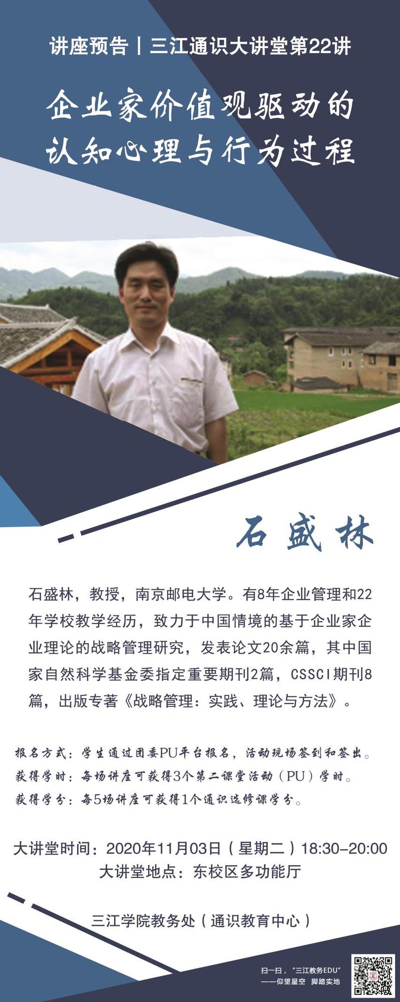 主讲专家:石盛林,教授,南京邮电大学管理学院。有8年企业管理和22年学校教学经历,致力于中国情境的基于企业家企业理论的战略管理研究,发表论文20余篇,其中国家自然科学基金委指定重要期刊2篇,CSSCI期刊8篇,创新性地提出了实践导向型战略管理体系架构,出版专著《战略管理:实践、理论与方法》, 2011年被评为江苏省高等学校精品教材,2018年入选江苏省重点建设教材。提出并实践了“质疑-探思-求解”的实践导向型教学法,主持完成教学质量工程项目5项,主编教材《质量管理:理论、方法与实践》入选2019年江苏省重点建设教材。