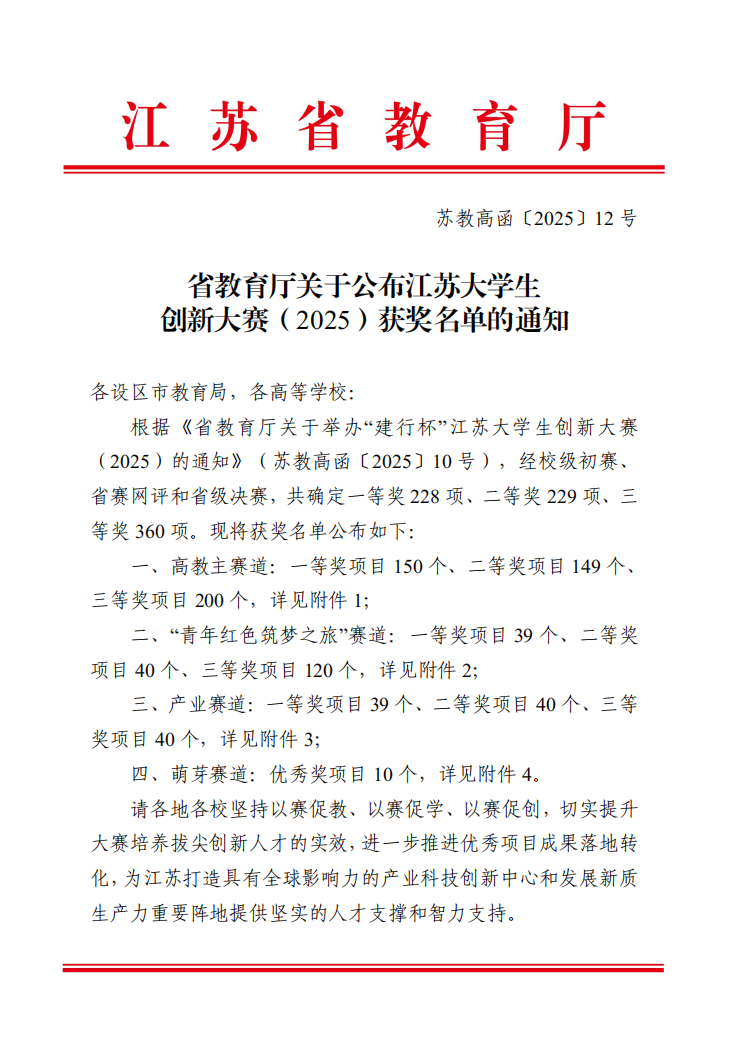 我校在江苏省大学生创新大赛(2025)中获佳绩