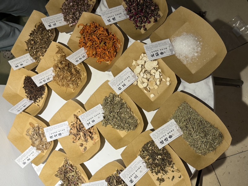 香囊制作区弥漫着艾草、丁香等天然材料的清香。参与者亲手挑选布料、填充药材,并运用蓝晒工艺在香囊表面印制出独具美感的纹样。每一只香囊不仅承载着安康的寓意,也凝结着同学们的巧思与手作温度。