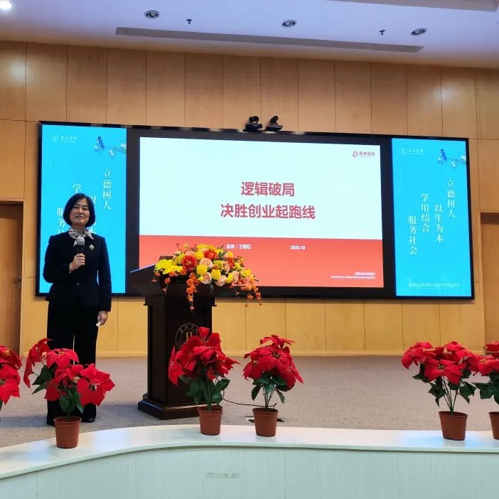 10月29日晚,我校双创系列讲座第85讲《逻辑破局:决胜创业起跑线》在学术报告厅成功举办。南京奇风人力资源管理咨询公司创始人、总经理丁春红老师应邀担任主讲嘉宾。