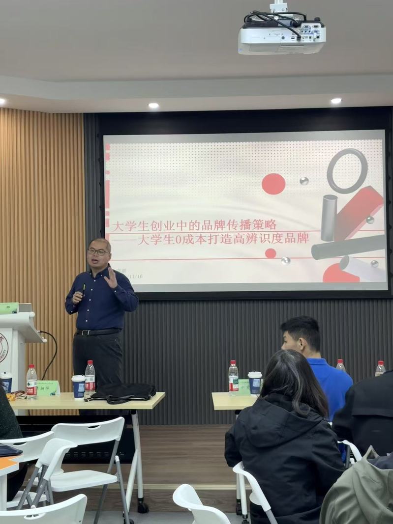 为深化创新创业教育,提升学生品牌构建与传播实战能力,11月中下旬我校举办了第五期创新创业菁英班。本期课程聚焦“品牌创新与0成本传播”,特邀行业专家李拥华、虞群联袂授课。课程内容系统全面,涵盖《品牌创新基础》、《品牌战略制定》、《品牌传播策略》及《品牌创新案例深析》等核心理论,并融合“品牌方案实战演练”与“企业实践参访”等环节,旨在全方位培养学员的品牌思维与低成本推广实战能力,为创新创业项目注入持续活力。